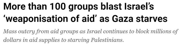 今年7月,100多家非政府组织发表联名呼吁,指责以色列对加沙地带的持续封锁制造“大规模饥饿”,呼吁立刻停火并解除对援助物资流入渠道所有限制。